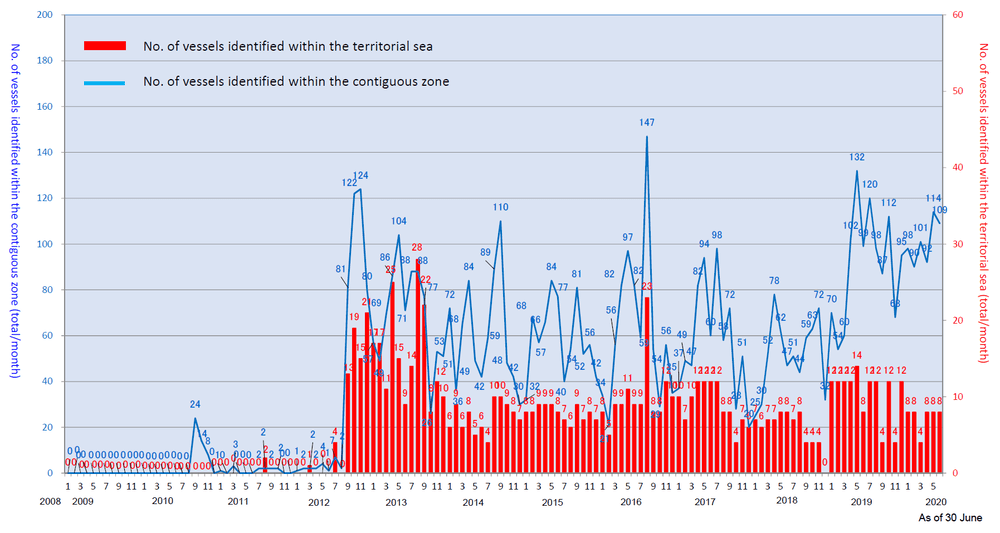 On July 7, Suga Yoshihide, Chief Cabinet Secretary stated, “I’m in no position to comment on the intention behind the activities of the Chinese government vessels, but as the government, we want to continue to make every effort to cautiously monitor the waters around the Senkaku Islands with a sense of tension.”