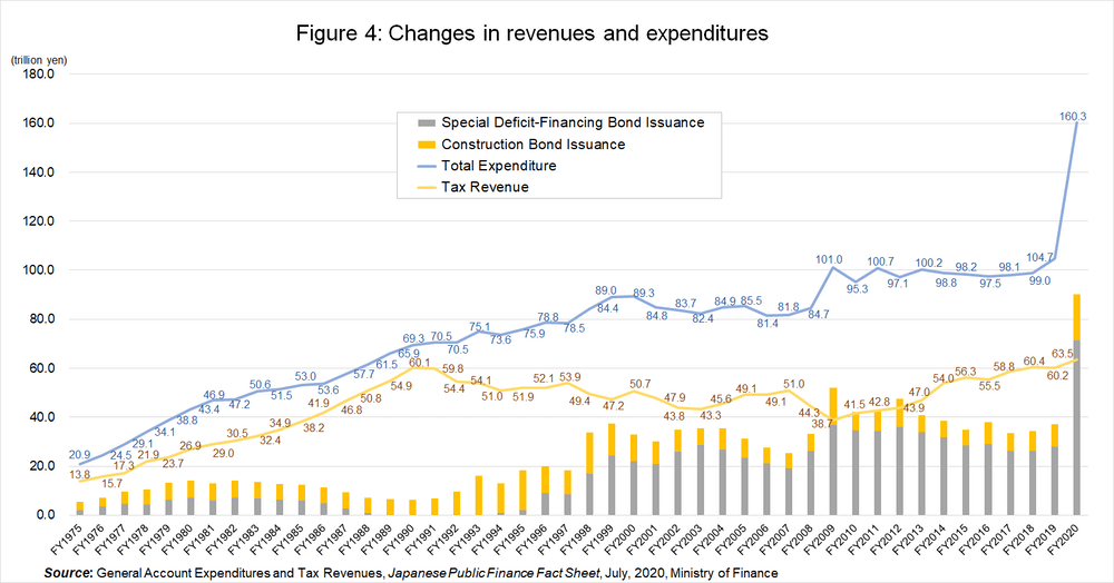 The gap between revenues and expenditures is like the widening jaws of a crocodile and in 2020, the crocodile’s mouth has become completely disconnected. The supplementary budget was the issuance of deficit-financing bonds at 90 trillion yen. The cost of social security has only been increasing in government expenditures. This development has been striking especially since the start of the twenty-first century.